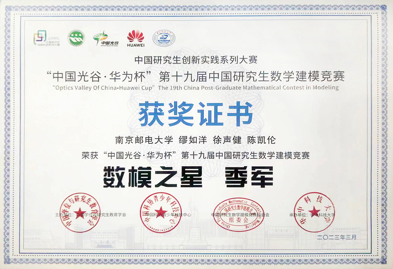 3月19日,由教育部学位管理与研究生教育司指导,中国学位与研究生教育学会、中国科协青少年科技中心共同主办的第十九届中国研究生数学建模竞赛颁奖典礼在华中科技大学落下帷幕。经过现场答辩环节的激烈角逐,南邮“重铸荣光”团队脱颖而出,成功当选“数模之星”。