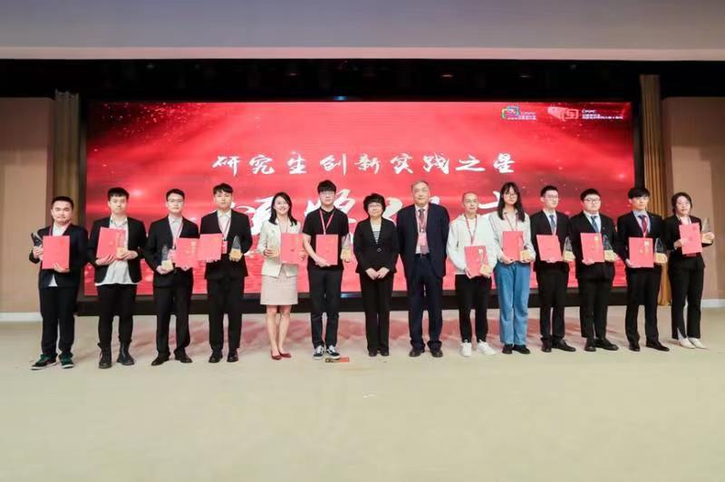 教育部党组成员、副部长翁铁慧为清华大学、复旦大学、上海交通大学、同济大学、武汉大学、中山大学、南京邮电大学等11所高校的12支参赛团队颁发“研究生创新实践之星”奖杯和证书。