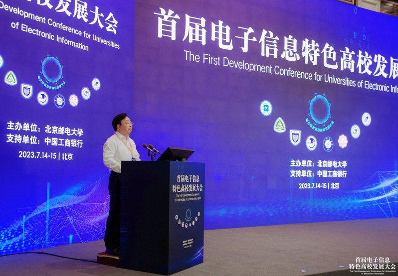 7月14日,首届电子信息特色高校发展大会在京开幕。在当天举行的主论坛上,来自北京邮电大学、南京邮电大学、重庆邮电大学、西安邮电大学,电子科技大学、西安电子科技大学、杭州电子科技大学、桂林电子科技大学以及中国电信集团有限公司、中国联合网络通信集团有限公司的院士专家学者围绕“聚焦国家战略,加强电子信息拔尖创新人才自主培养”主题,深入交流全面提高人才自主培养质量经验,共话建设一流电子信息特色大学美好未来。南京邮电大学党委书记刘陈、电子科技大学党委书记王亚非分阶段主持论坛。